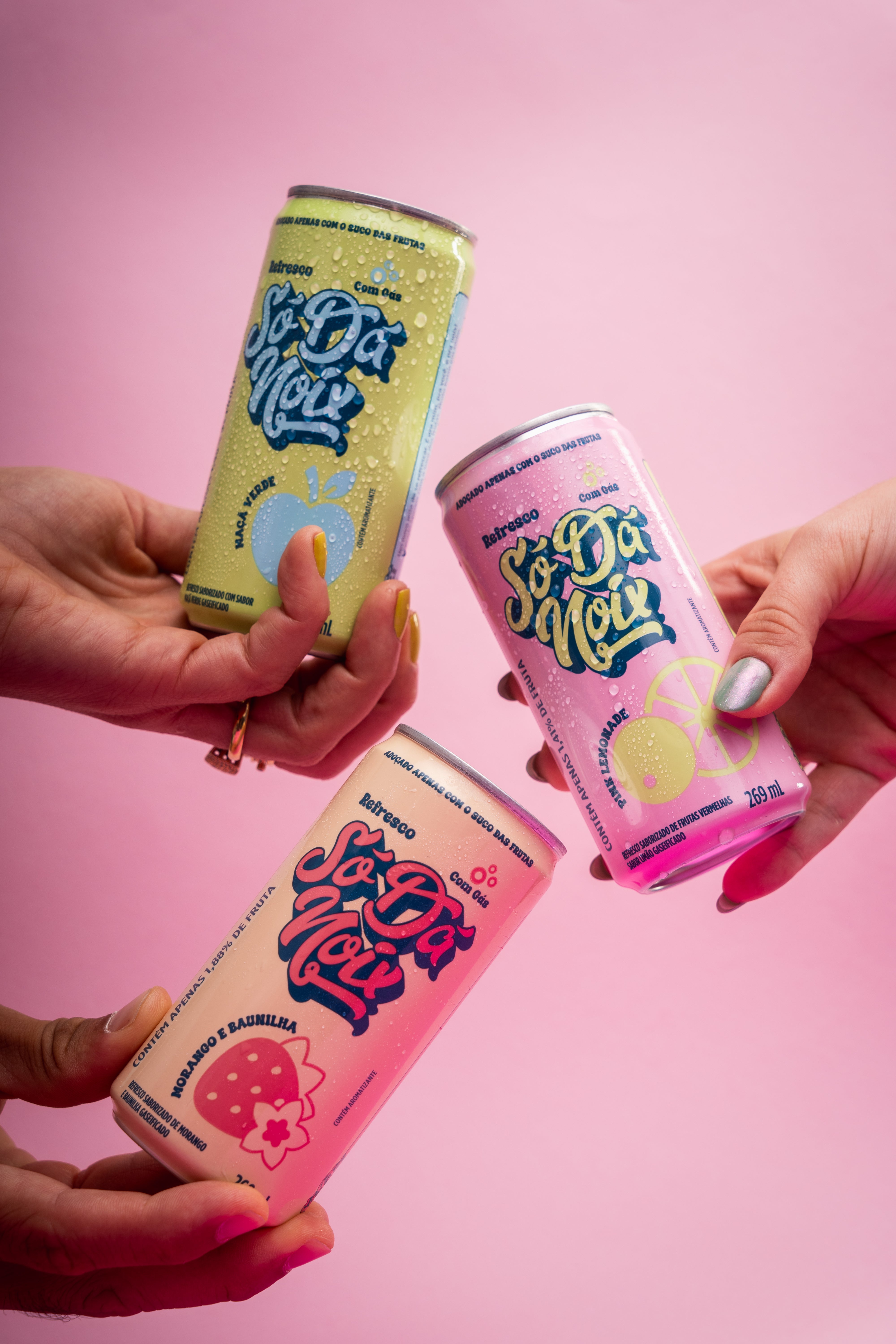 Sao 3 sabores: Maçã verde, Morango e Baunilha e Pink Lemonade.