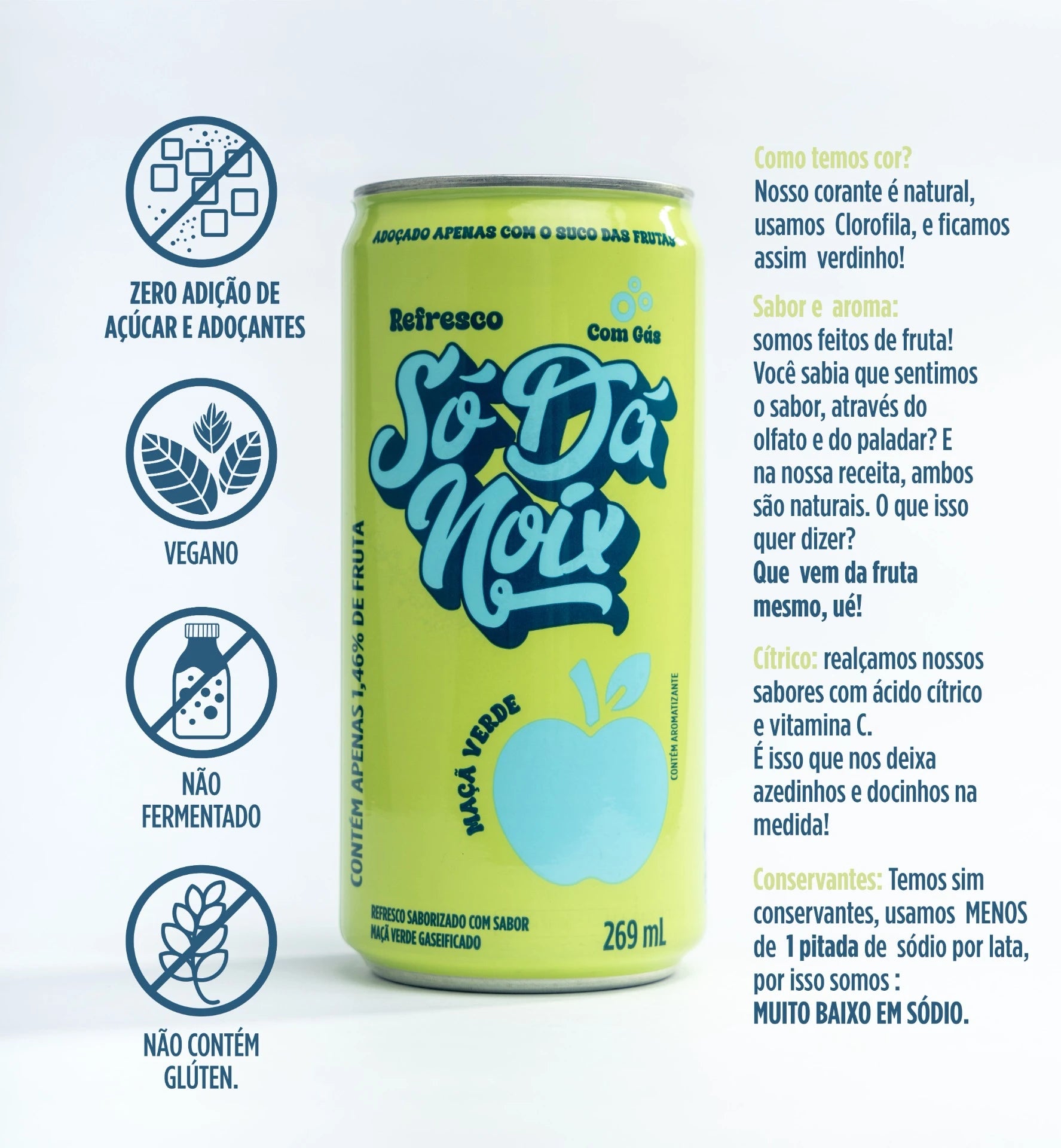 Temos gostinho de maçã verde, mas nossa cor é natural da clorofila.
